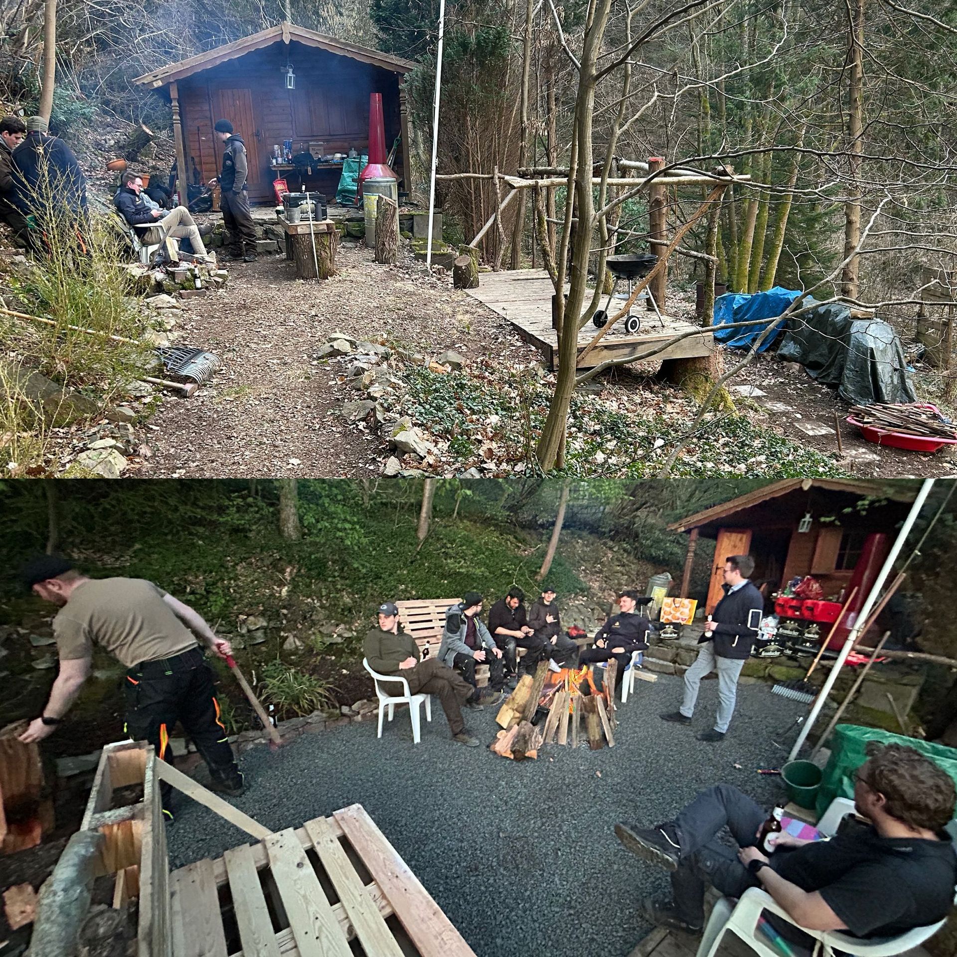Wie man auf dem Bild sehen kann, sind wir fleißig dabei, die Hütte auf Vordermann zu bringen.